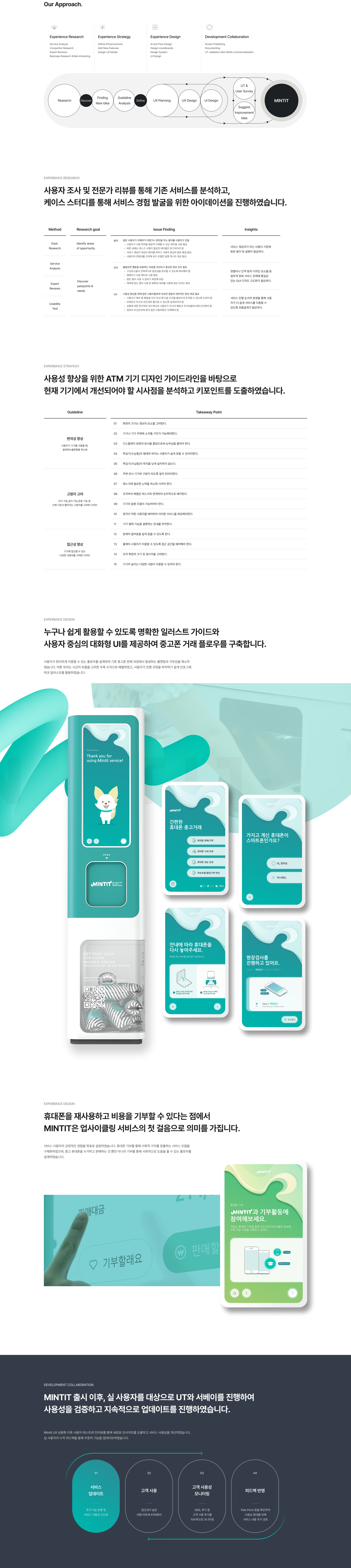 판매 절차를 단순화하여 사용자가 느끼는 부담감을 최소화하였으며 친근한 이미지의 화면으로 디자인하여 접근성을 향상시켰습니다. 마트용, 휴대폰 사업자, 전자제품 대리점 등 다양한 곳에 설치가 가능한 Kiosk와 Mini 버전의 전체적인 경험디자인, 사업 전략, UX/UI 디자인을 진행하였습니다.