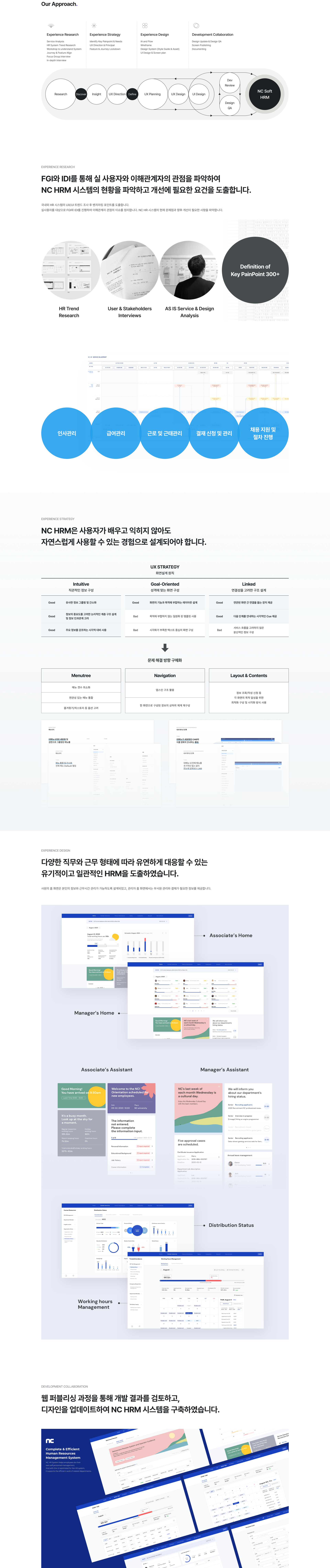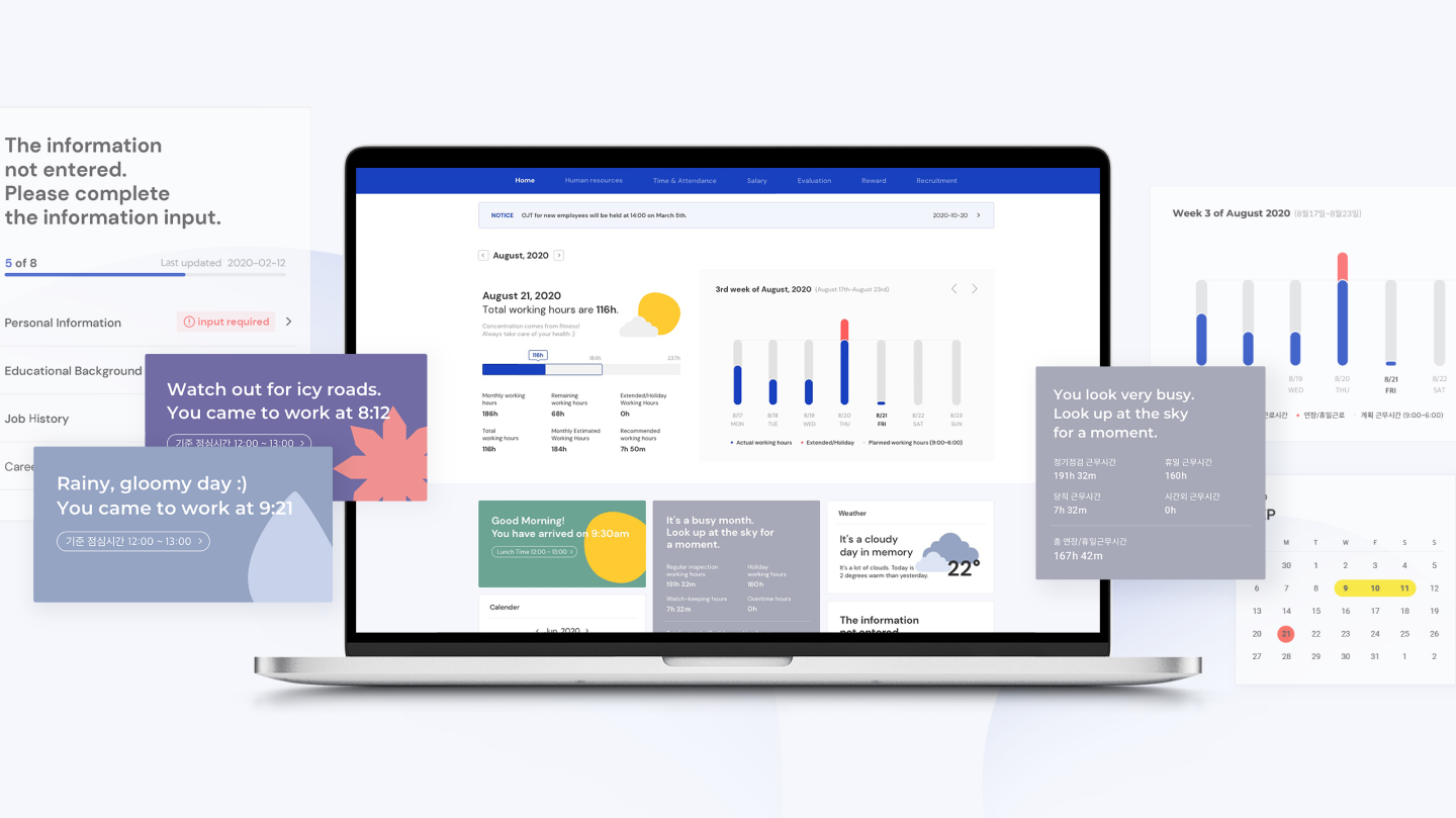 가상 시스템 관리자처럼 설계되어 직원들이 데이터, 근태 및 급여를 더욱 효율적으로 관리할 수 있도록 도와주는 NC HRM 시스템의 UI/UX 개편을 진행하였습니다.