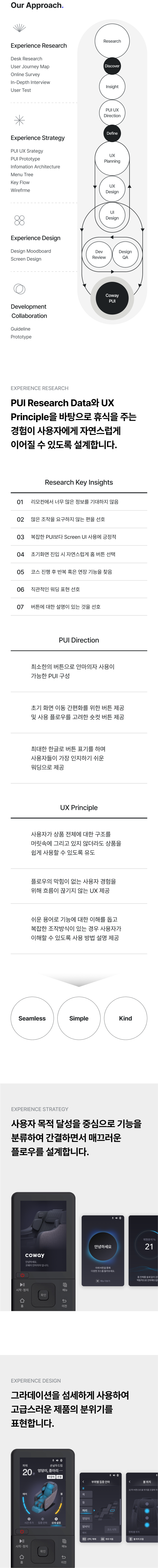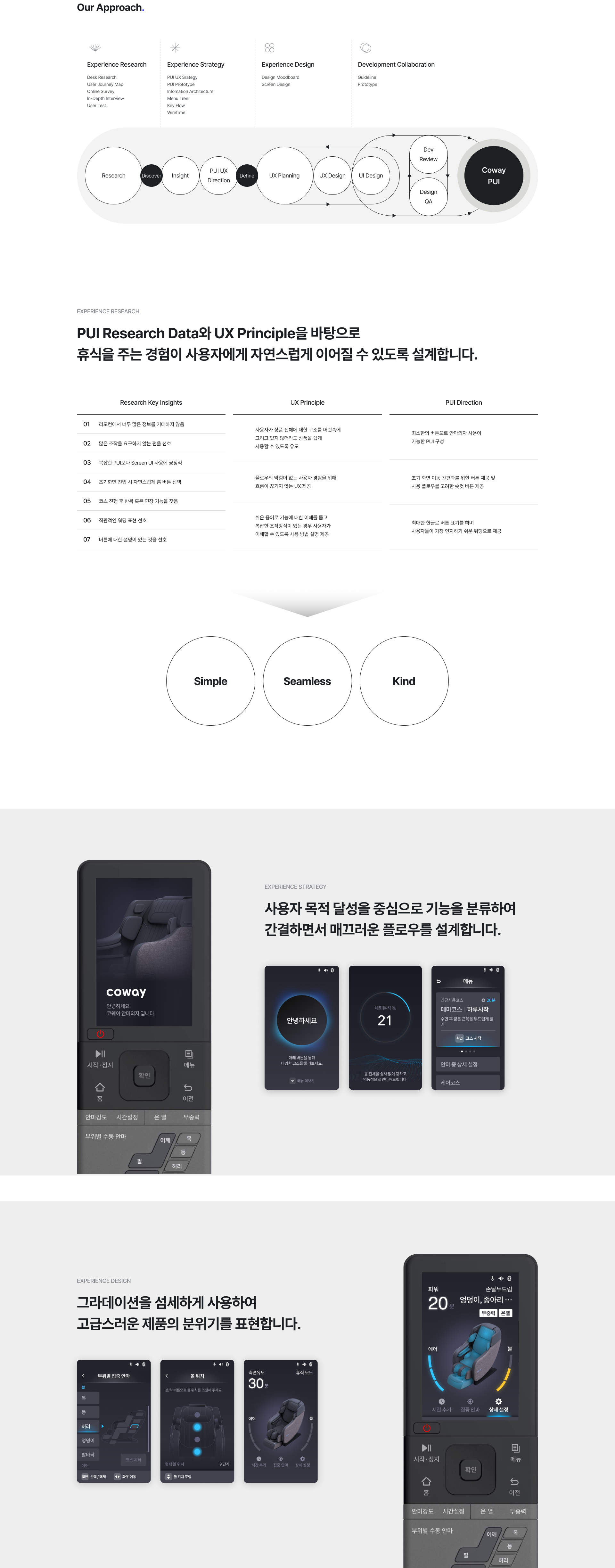 스트레스에 지친 현대인을 위한 Sleep & Healing 제품군을 확장하면서 Coway 만의 리모트 컨트롤의 UX/UI 전략을 수립하고, 나아가 브랜드 아이덴티티를 구축하고자 합니다.